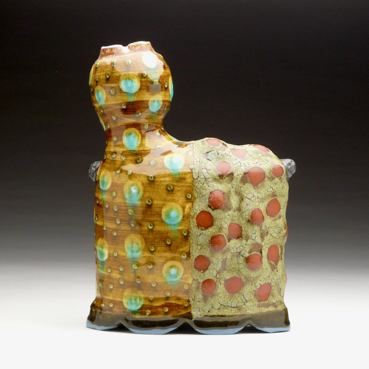Ronan Peterson has been in the Triangle area for 20 years and maintains Nine Toes Pottery in Chapel Hill, NC. Ronan grew up in the mountains of western North Carolina and attended UNC-Chapel Hill to obtain a BA in Anthropology and Folklore. Discovering ceramics in 1997, Ronan spent many years working for potters and attending craft schools to improve his skills in manipulating and expressing ideas through clay. He moved to the Triangle in 2003 and was able to set up his studio and teach at local craft centers for many years. Ronan’s primary focus for the past few decades has been working with bright and vibrant colored glazes to complement his decorative approaches to earthenware pottery. Recently, he has begun to explore more surfaces with both low fire and high fire soda kiln firings.